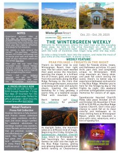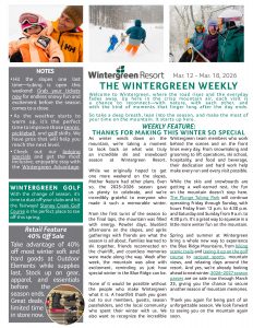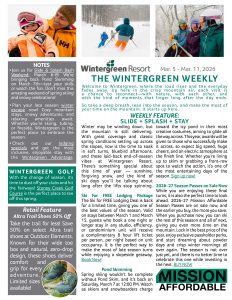 The Wintergreen Weekly is our weekly messenger listing hours of operation, special events, activities and a Weekly Feature to give you a more in depth look at all of our wonderful offerings, services, and amenities. Please click on the image below to view the current issue.