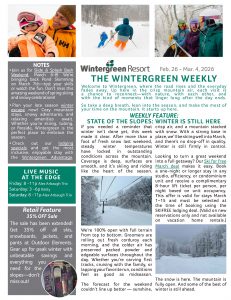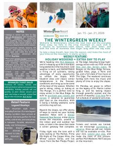 The Wintergreen Weekly is our weekly messenger listing hours of operation, special events, activities and a Weekly Feature to give you a more in depth look at all of our wonderful offerings, services, and amenities.  Please click on the image below to view the current issue.