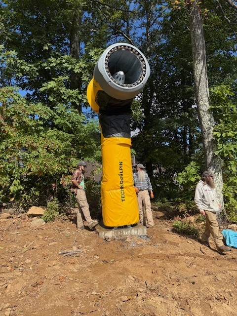 Welding is nearly complete on the new water lines connecting our mains to the laterals for Wintergreen’s brand-new TechnoAlpin TT10 fan guns! Next up, electrical lines will bring these cutting-edge machines online, fully integrated into our automated snowmaking system. Our new guns are already being placed in their permanent home locations on freshly set concrete pits—becoming an important part of the Wintergreen landscape.